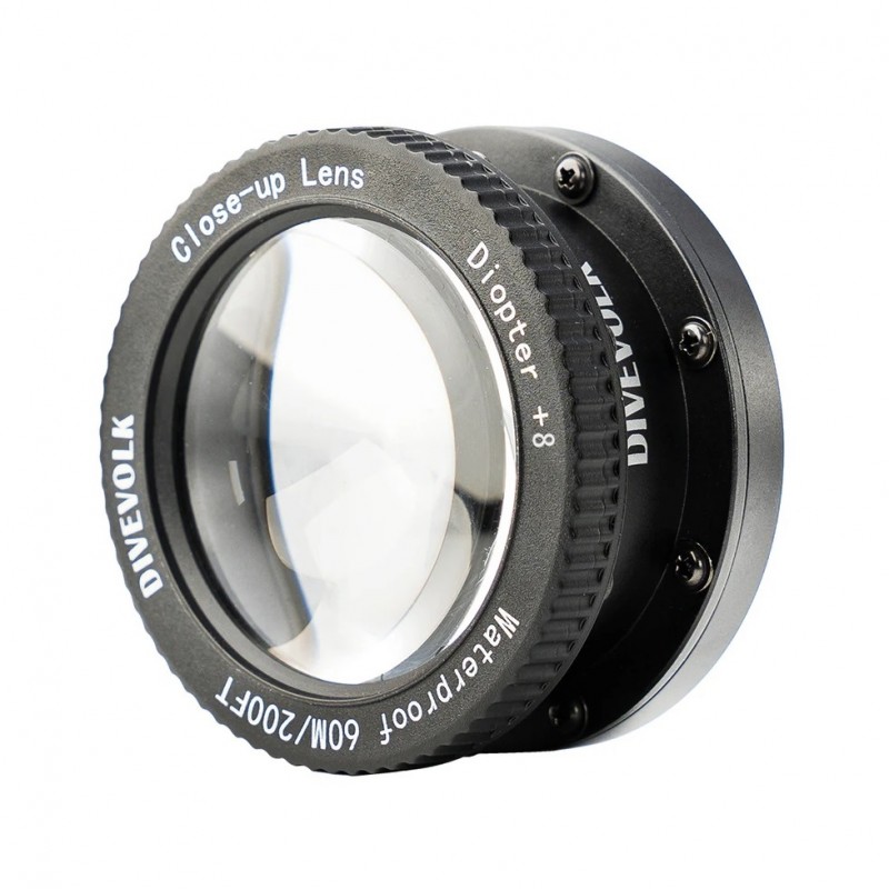 Obiektyw do makro fotografii podwodnej, zapewnia efekt powiększenia i dioptrii +8, co pozwala na skupienie aparatu na przedmiocie na bardzo niewielkiej odległości. Dzięki obiektywowi, zdjęcia posiadają efekt rozmycia tła.